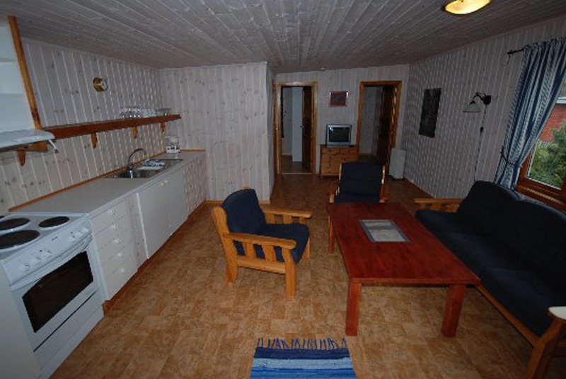 Kombinert stue og godt utstyrt minikjøkken